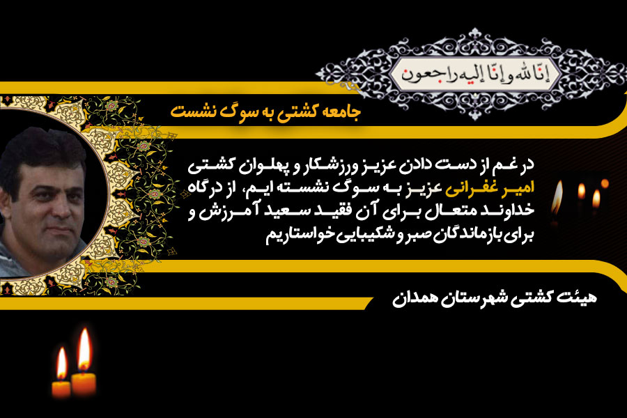 ️ درگذشت ناگهانی این پیشکسوت خوشنام ورزش وپهلوان صفت، رزمنده وجانباز دفاع مقدس را به خانواده محترم آن مرحوم و جامعه ورزش بخصوص دوستان وهمراهی پر تلاشش تسلیت عرض نموده، از درگاه خداوند متعال برای آن فقید سعید آمرزش و برای بازماندگان صبر و شکیبایی خواهانم.هیئت کشتی شهرستان همدان
