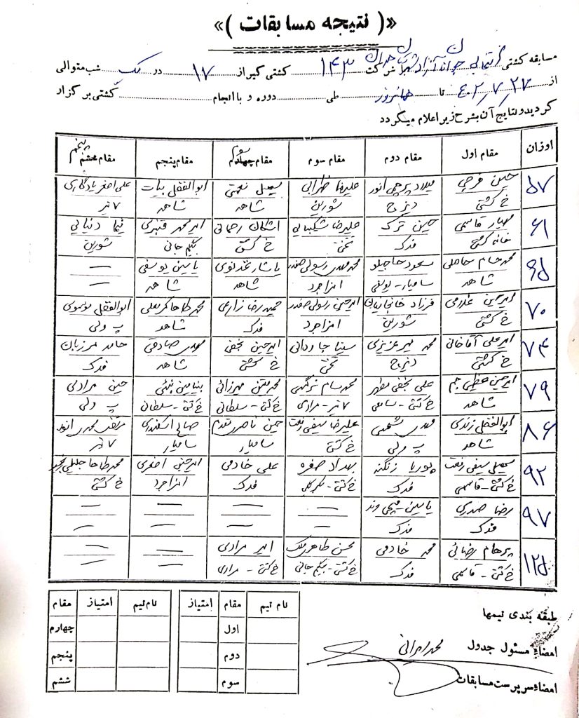 نتایج مسابقات کشتی آزاد جوانان شهرستان همدان